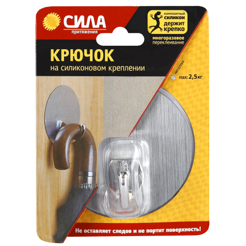Настенный крючок на самоклеящемся силиконовом креплении СИЛА SSH10-R1S-12.