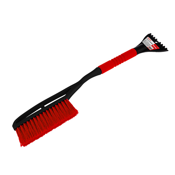 Щетка оснащена четырехрядной щетиной и надежным скребком для удаления участков наледи.