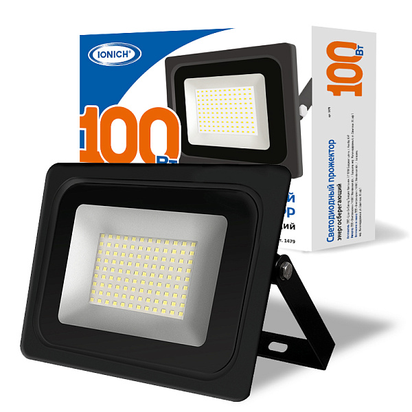 Прожектор светодиодный 100Вт 6500К IP65 8100Лм черный Ionich 1479