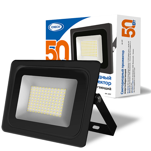 Прожектор светодиодный 50Вт 6500К IP65 4250Лм черный Ionich 1477