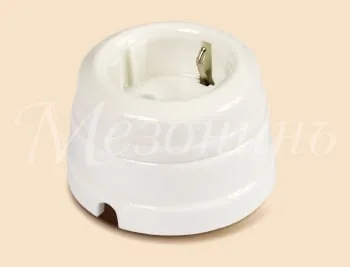 Декоративная двухполюсная ретро розетка керамическая с заземляющим контактом и подъемной рамкой, для наружного и внутреннего* монтажа.