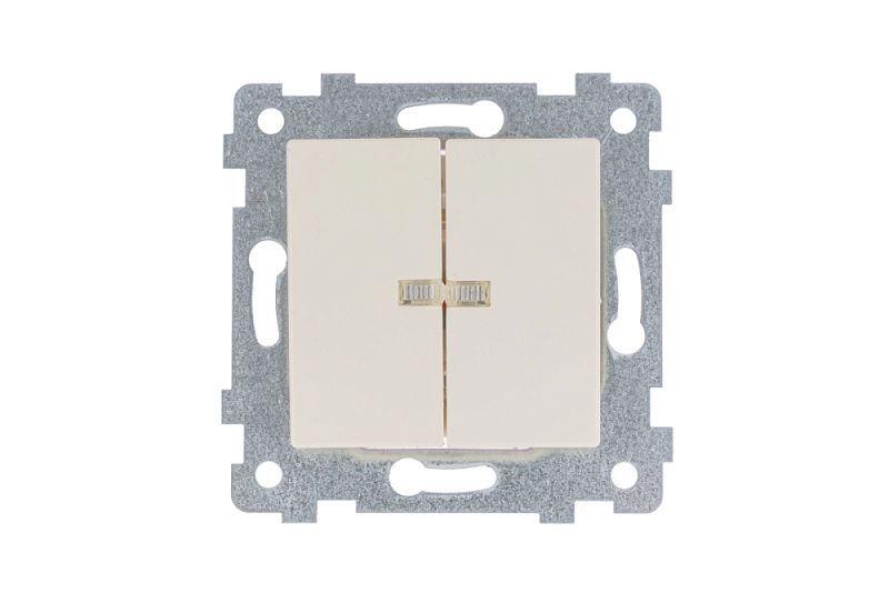 Механизм выключателя двухклавишный скрытой установки со светоиндексацией Номинальный ток — 10 А размер 70,6х70,6х45мм