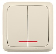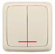 Выключатель 2 ОП 10А (изол.пл.) с подсв. Hegel Alfa слоновая кость