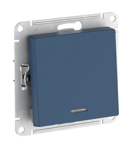 Механизм с быстрозажимными клеммами Systeme Electric (ранее Schneider Electric) серии AtlasDesign в цвете аквамарин 1-клавишного переключателя с подсветкой подходит для сетей 250 В, на ток 10 А.