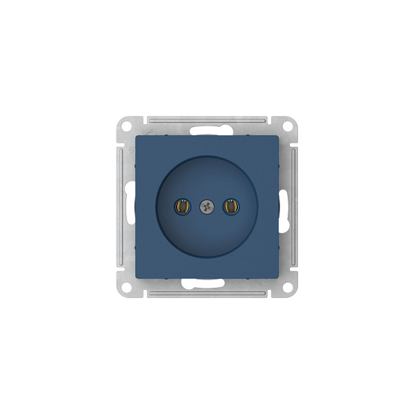Механизм с быстрозажимными клеммами Systeme Electric (ранее Schneider Electric) серии AtlasDesign в цвете аквамарин розетки одинарной без заземления и без шторок подходит для сетей 250 В, на ток 16 А.