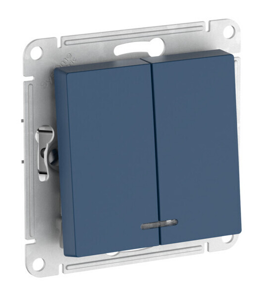 Механизм с быстрозажимными клеммами Systeme Electric (ранее Schneider Electric) серии AtlasDesign в цвете аквамарин 2-клавишного выключателя с подсветкой подходит для сетей 250 В, на ток 10 А.