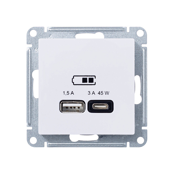 Розетка Systeme Electric (ранее Schneider Electric) серии AtlasDesign в цвете лотос двойная USB с разъемами типа A+C высокоскоростная.