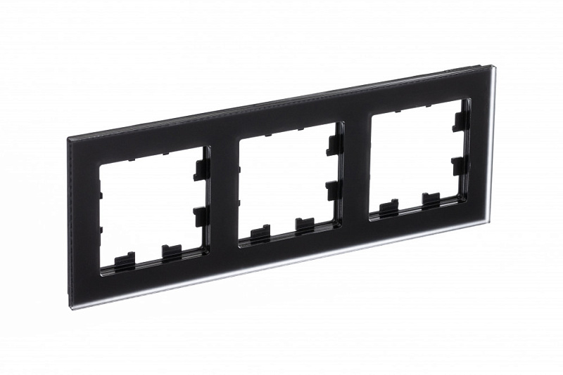 Рамка Systeme Electric (ранее Schneider Electric) серии AtlasDesign Nature в цвете чёрное матовое стекло 3-постовая.