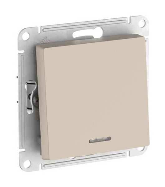 Механизм с быстрозажимными клеммами Systeme Electric (ранее Schneider Electric) серии AtlasDesign в цвете песочный 1-клавишного переключателя с подсветкой подходит для сетей 250 В, на ток 10 А.