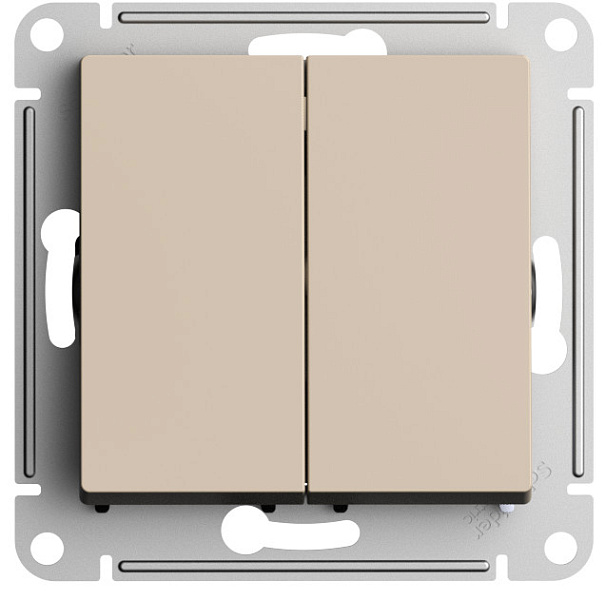Механизм Systeme Electric (ранее Schneider Electric) серии AtlasDesign в цвете песочный переключателя 2-клавишного перекрёстного подходит для сетей 250 В, на ток 10 А.