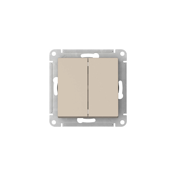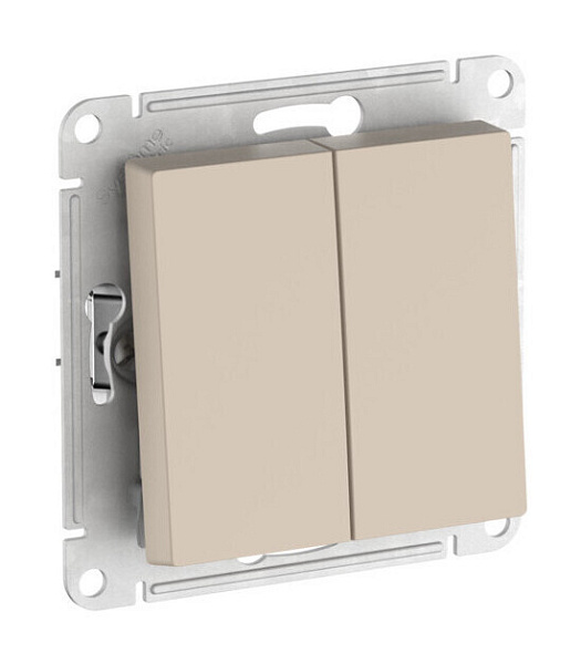 Механизм с быстрозажимными клеммами Systeme Electric (ранее Schneider Electric) серии AtlasDesign в цвете песочный 2-клавишного переключателя подходит для сетей 250 В, на ток 10 А.