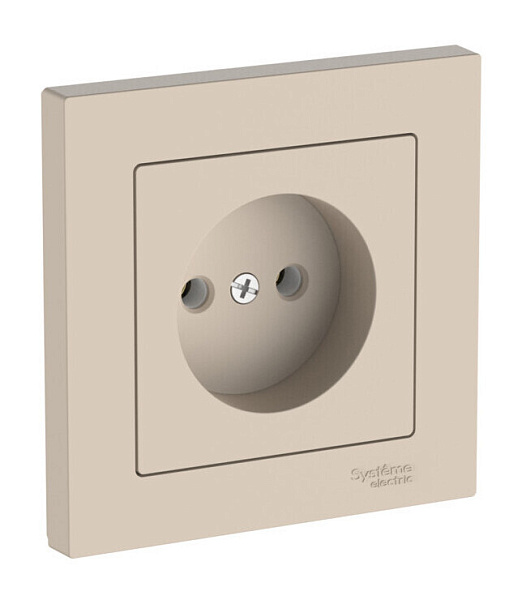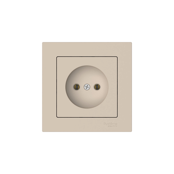 Механизм с быстрозажимными клеммами розетки без заземления в сборе Systeme Electric (ранее Schneider Electric) серии AtlasDesign в цвете песочный подходит для сетей 250 В, на ток 16 А.
