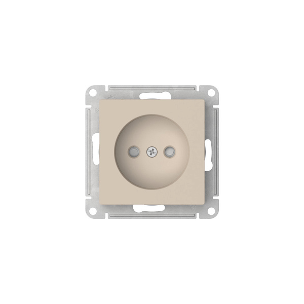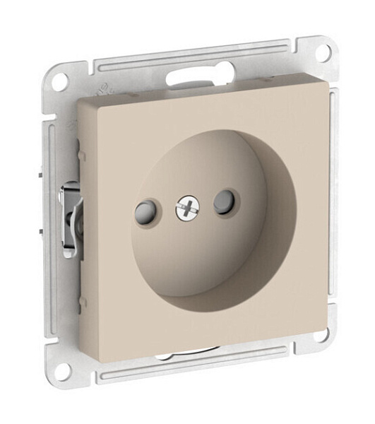 Механизм с быстрозажимными клеммами Systeme Electric (ранее Schneider Electric) серии AtlasDesign в цвете песочный розетки одинарной без заземления со штороками подходит для сетей 250 В, на ток 16 А.