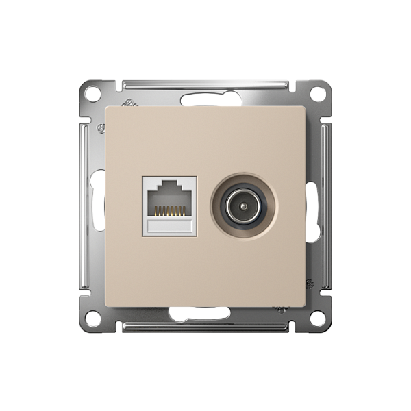 Механизм Systeme Electric (ранее Schneider Electric) серии AtlasDesign в цвете песочный двойной розетки разъёмами RJ45 категория 5е и TV предназначен для удобного и быстрого подключения вашего компьютера и телевизора к соответствующим сетям.