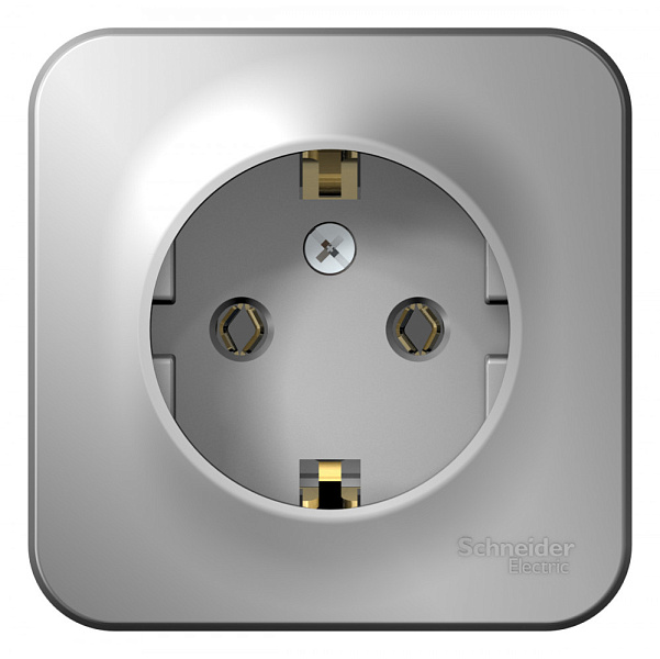 Розетка Systeme Electric (ранее Schneider Electric) BLANCA (алюминий, открытой установки) одноместная с заземлением, без шторок, предназначена для сетей до 250В, на ток до 16А.