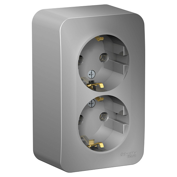 Розетка Systeme Electric (ранее Schneider Electric) BLANCA (алюминий, открытой установки) двухместная, с заземлением, без шторок предназначена для сетей до 250В, на ток до 16А.