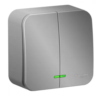 Выключатель Systeme Electric (ранее Schneider Electric) BLANCA (алюминий, открытой установки) двухклавишный предназначен для сетей до 250В, на ток до 10А.