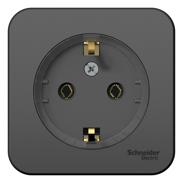 Розетка Systeme Electric (ранее Schneider Electric) BLANCA (антрацит, открытой установки) одноместная, с заземлением, без шторок предназначена для сетей до 250В, на ток до 16А.