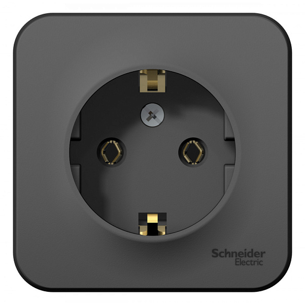 Розетка Systeme Electric (ранее Schneider Electric) BLANCA (антрацит, открытой установки) одноместная с заземлением, без шторок, предназначена для сетей до 250В, на ток до 16А.