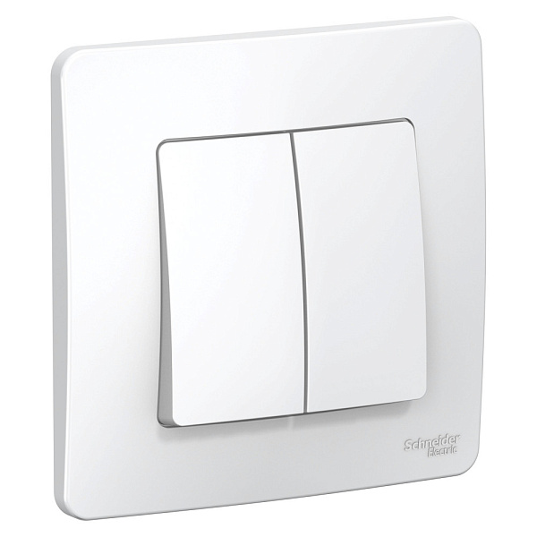 Переключатель Systeme Electric (ранее Schneider Electric) BLANCA (белый, скрытой установки) двухклавишный предназначен для сетей до 250В, на ток до 10А.