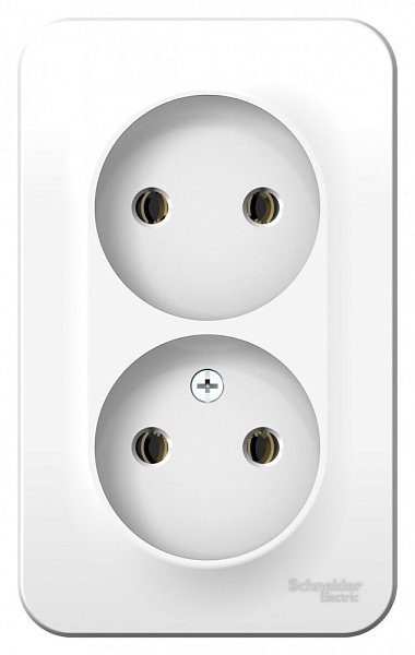 Розетка Systeme Electric (ранее Schneider Electric) BLANCA (белый, открытой установки) двухместная, без шторок и заземления, с монтажной пластиной предназначена для сетей до 250В, на ток до 16А.