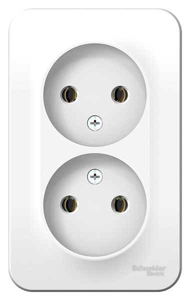Розетка Systeme Electric (ранее Schneider Electric) BLANCA (белый, открытой установки) двухместная, без шторок и заземления предназначена для сетей до 250В, на ток до 16А.