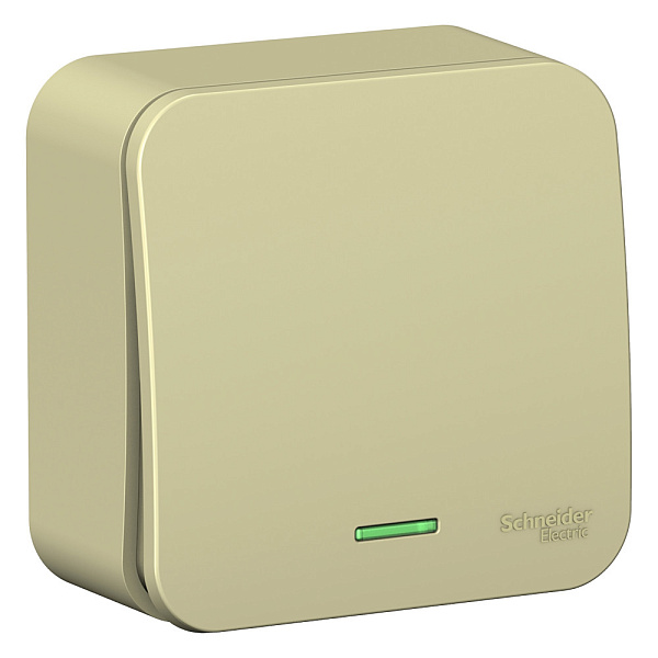 Переключатель одноклавишный Systeme Electric (ранее Schneider Electric) BLANCA (открытой установки, цвет бежевый) с изолирующей пластиковой пластиной и подсветкой предназначен для сетей до 250 В, на ток до 10 А.