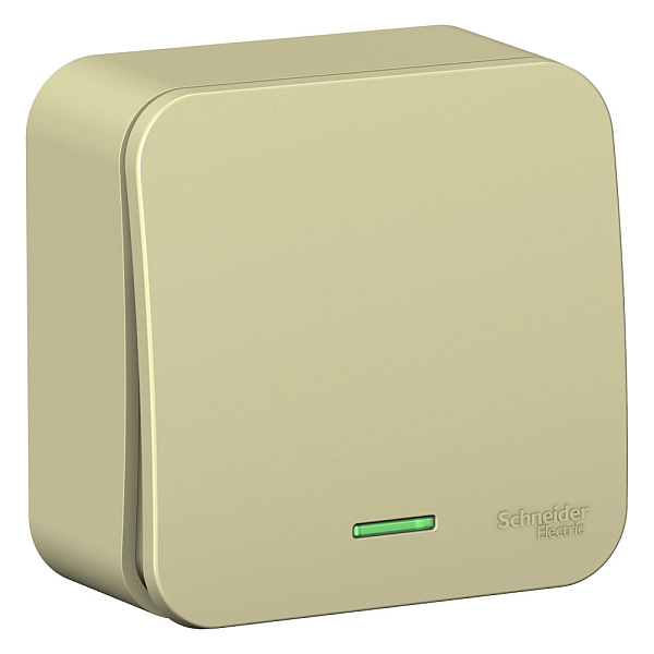 Выключатель одноклавишный Systeme Electric (ранее Schneider Electric) BLANCA (открытой установки, цвет бежевый) с изолирующей пластиковой пластиной и подсветкой предназначен для сетей до 250 В, на ток до 10 А.