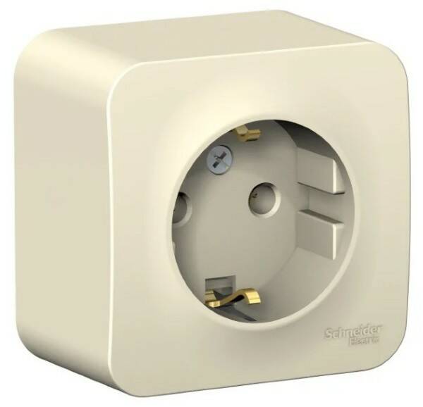 Розетка Systeme Electric (ранее Schneider Electric) BLANCA (молочный, открытой установки) одноместная с заземлением, без шторок, предназначена для сетей до 250В, на ток до 16А.