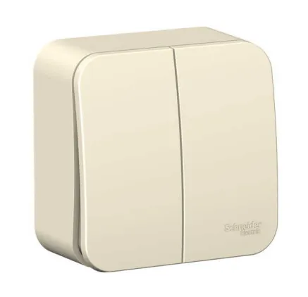 Выключатель Systeme Electric (ранее Schneider Electric) BLANCA (молочный, открытой установки) двухклавишный предназначен для сетей до 250В, на ток до 10А.