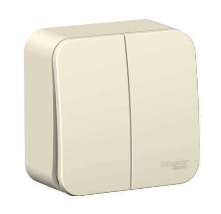 Выключатель Systeme Electric (ранее Schneider Electric) BLANCA (молочный, открытой установки) с изолирующей пластиной двухклавишный предназначен для сетей до 250В, на ток до 10А.