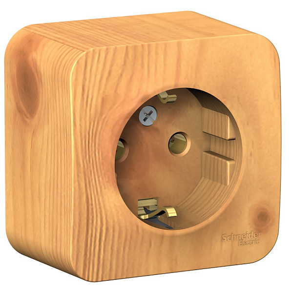 Розетка Systeme Electric (ранее Schneider Electric) BLANCA (ясень, открытой установки) одноместная с заземлением, без шторок, предназначена для сетей до 250В, на ток до 16А.