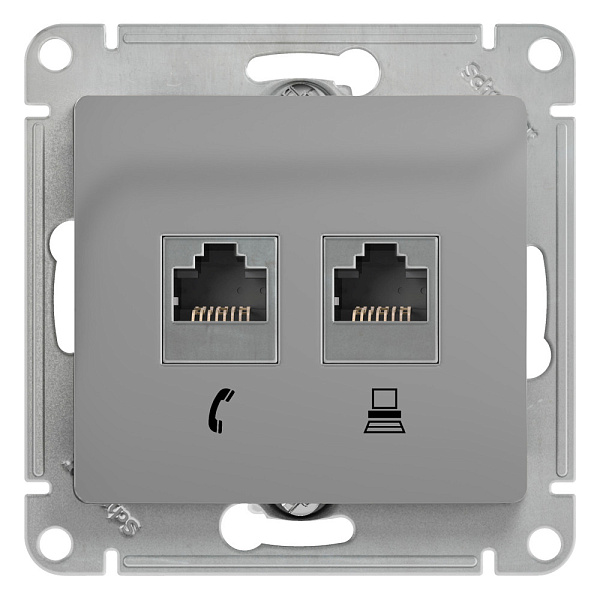 Розетка 1 СП комп. RJ45 кат.5e + телеф.RJ11 механизм SE Glossa алюминий