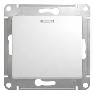 Механизм Systeme Electric (ранее Schneider Electric) серии Glossa (цвет белый) выключателя 1-клавишного с подсветкой подходит для сетей 250 В, на ток 10 А.