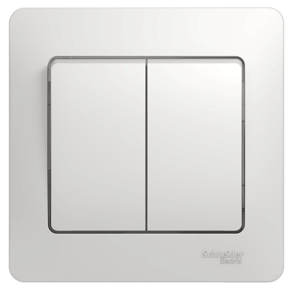 Выключатель Systeme Electric (ранее Schneider Electric) серии Glossa (в сборе, цвет белый) двухклавишный подходит для сетей 250 В, на ток 10 А.