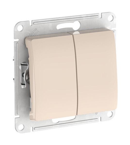 Механизм с быстрозажимными клеммами Systeme Electric (ранее Schneider Electric) серии Glossa (цвет бежевый) выключателя 2-клавишного подходит для сетей 250 В, на ток 10 А.