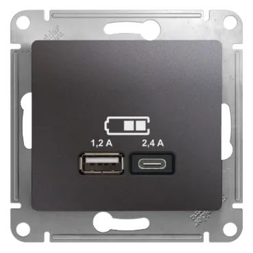 Розетка Systeme Electric (ранее Schneider Electric) серии Glossa (цвет графит) двойная USB с разъемами типа A+C.