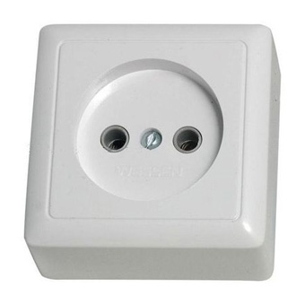 Розетка Systeme Electric (ранее Schneider Electric) ХИТ (открытой установки, цвет белый) без заземления и без шторок предназначена для сетей до 250 В на ток до 10 А.