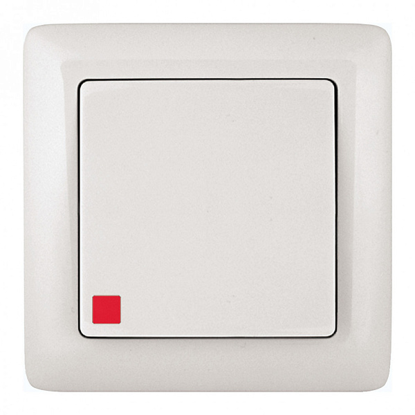 Выключатель одноклавишный Systeme Electric (ранее Schneider Electric) ХИТ (скрытой установки, цвет белый) с подсветкой предназначен для сетей до 250 В, на ток до 6 А.