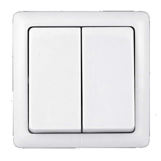 - Двухклавишный выключатель позволяет управлять двумя источниками света с одной точки.