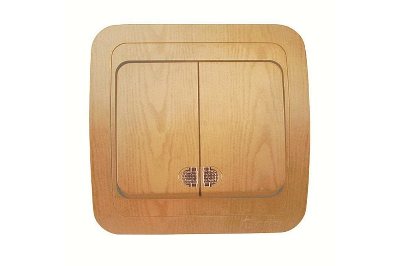 Выключатель 2 СП 10А с подсв. Makel Mimoza дуб