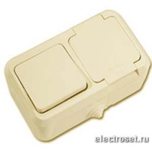 Блок ОП (1кл. + 1роз.с з/к) IP44 Makel Nemliyer кремовый
