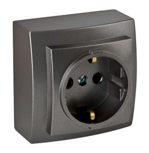 Розетка с заземлением 1 ОП 16А с крышкой IP20 Nilson Themis Metallic антрацит