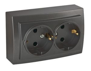 Розетка 2 ОП 16А Nilson Themis Metallic антрацит