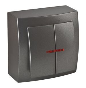 Выключатель 2 ОП 10А с подсв. Nilson Themis Metallic антрацит