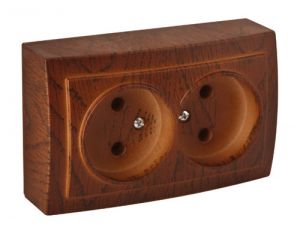 Розетка 2 ОП 16А Nilson Themis Wood черешня