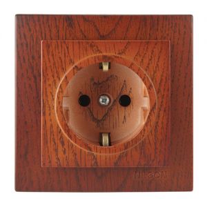 Розетка с заземлением 1 СП 16А с з/шт Nilson Touran Wood черешня