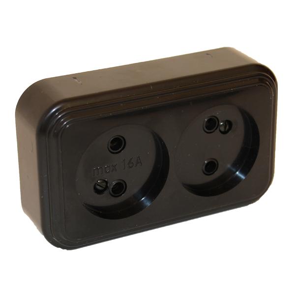 Двухместная розетка штепсельная двухполюсная открытой установки предназначена для присоединения электрических приемников с номинальным напряжением 250 В к электрической сети переменного тока в нормальных климатических условиях внешней среды по ГОСТ 15150 и ГОСТ 15543.