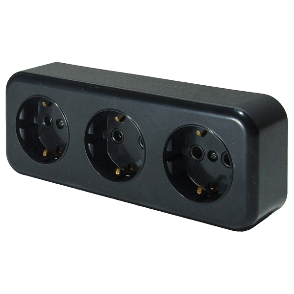 Розетка штепсельная двухполюсная трехместная открытой установки с заземляющим контактом предназначена для присоединения электрических приемников с номинальным напряжением 250 В к электрической сети переменного тока в нормальных климатических условиях внешней среды по ГОСТ 15150 и ГОСТ 15543.