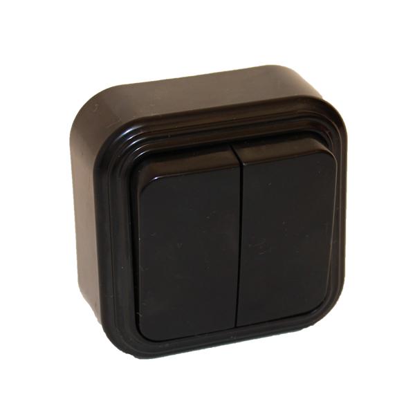 Выключатель установочный двухклавишный однополюсный для открытой установки предназначен для коммутации электрической цепи переменного тока с номинальным напряжением 250 В в нормальных климатических условиях внешней среды по ГОСТ15150 и ГОСТ 15543.